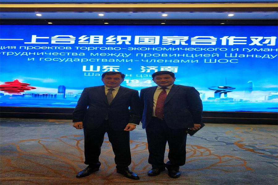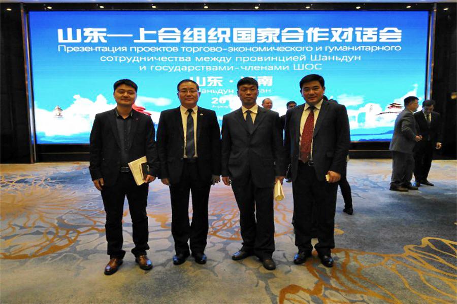 2019年4月4日,山東省民營企業(yè)高質量發(fā)展服務隊邀請部分服務對象企業(yè)參加在濟南舉辦的“山東-上合組織國家合作對話會”,我公司總經(jīng)理張海德、國際貿(mào)易部經(jīng)理邵武彬代表公司參加了本次高級別國家對話會,會議期間與各國大使進行了友好交流,取得了非常好的效果。