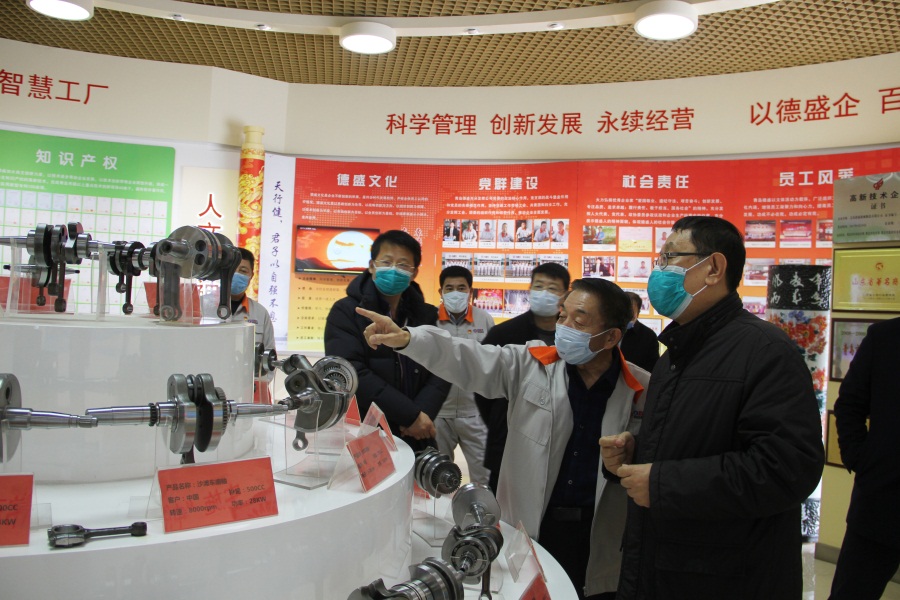 楊宏鈞主席一行現場調研了科技文化館和智能化生產車間。對我公司在全面落實疫情防控和復工復產等方面的做法給予充分肯定。并指出,德盛公司要搶抓機遇,確保企業生產安全有序,助力全市經濟社會快速發展。