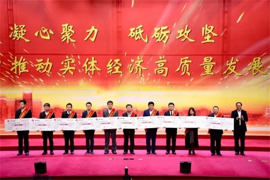 2020年4月10日上午,平度市促進實體經濟高質量發展大會在市民服務中心報告廳隆重召開,我公司榮獲“品牌質量建設獎”和“技術改造獎”兩項獎項。公司總經理張海德代表公司出席大會,并接受獎牌。