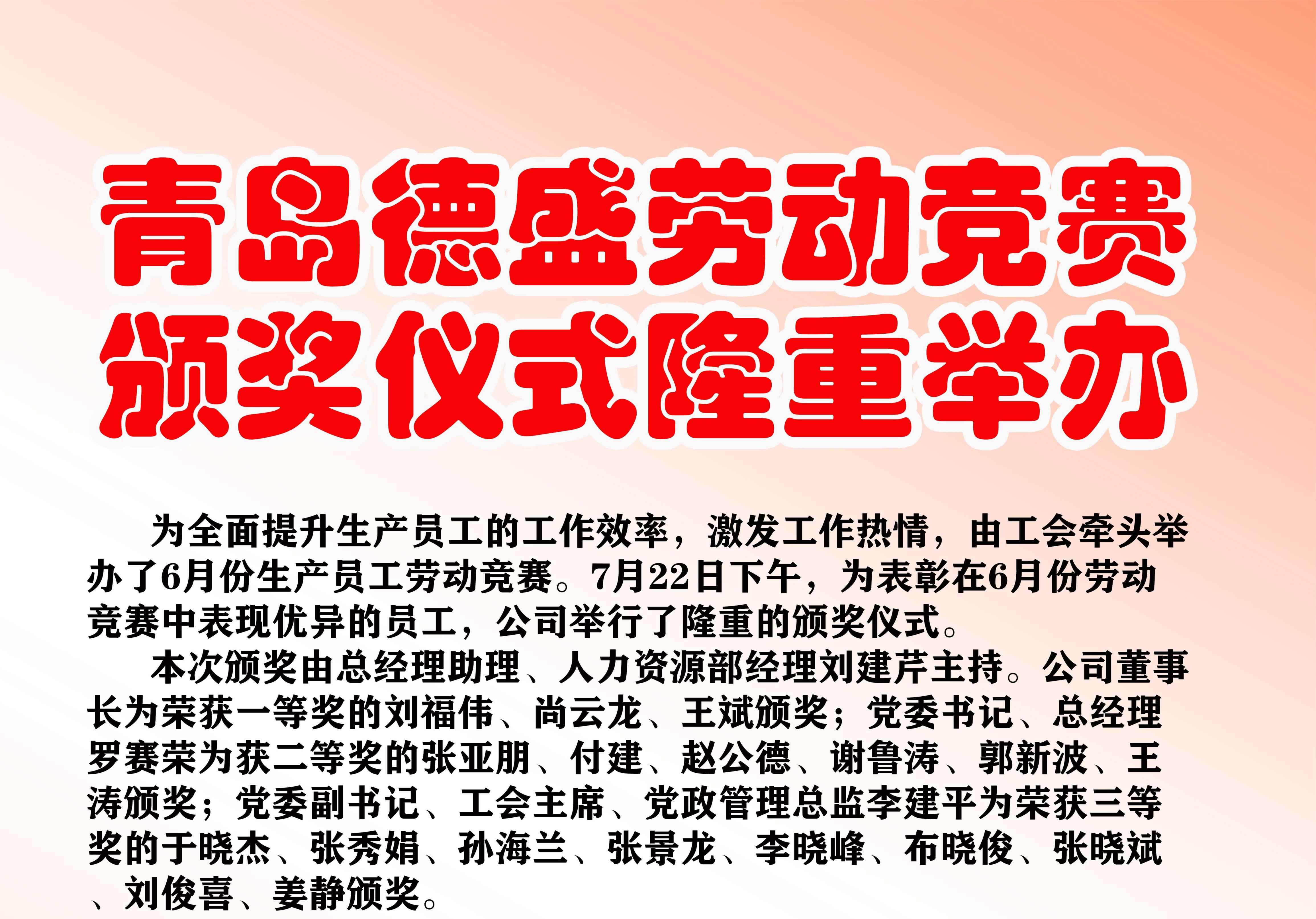 青島德盛勞動(dòng)競(jìng)賽頒獎(jiǎng)儀式隆重舉辦