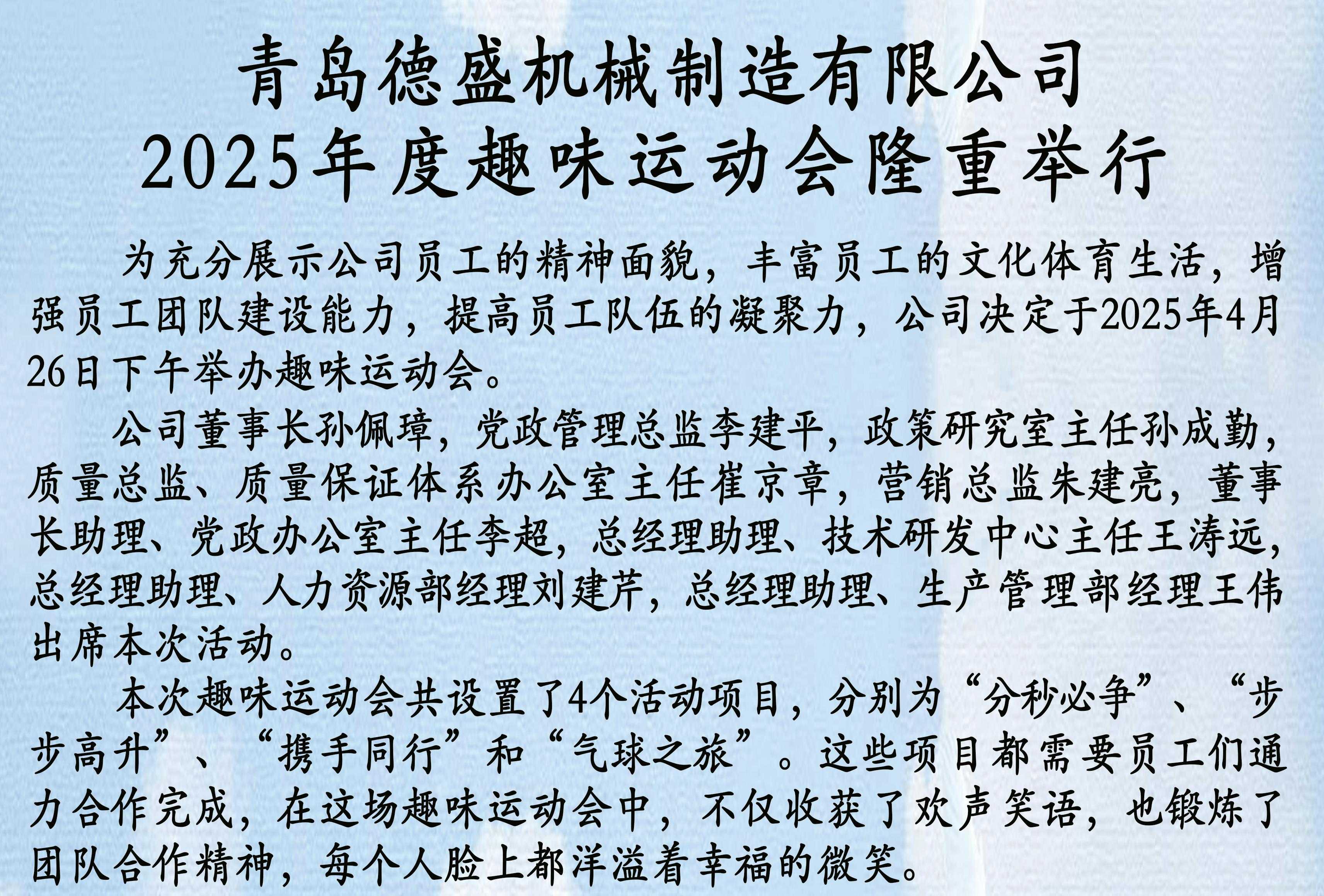 青島德盛機械制造有限公司2025年度趣味運動會隆重舉行